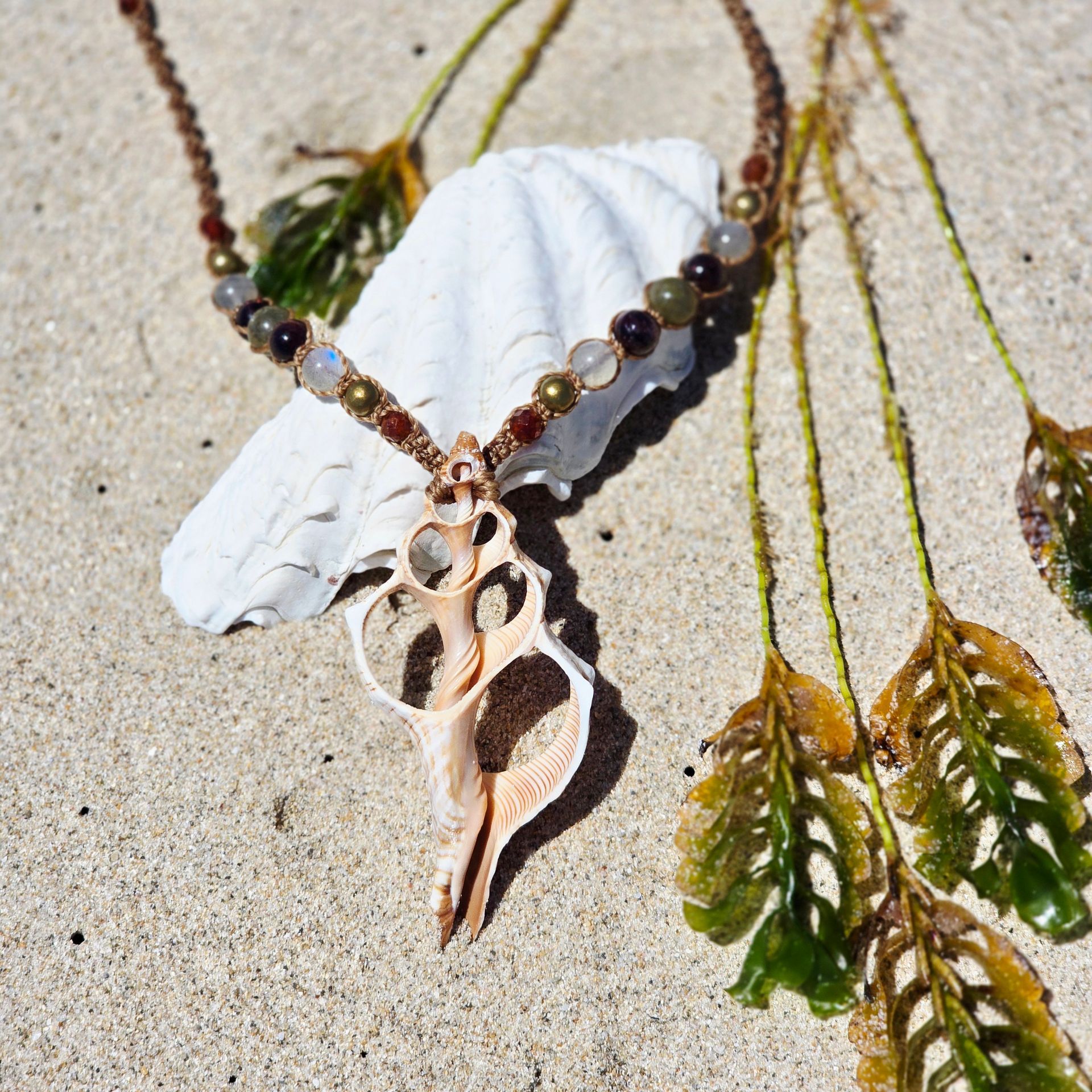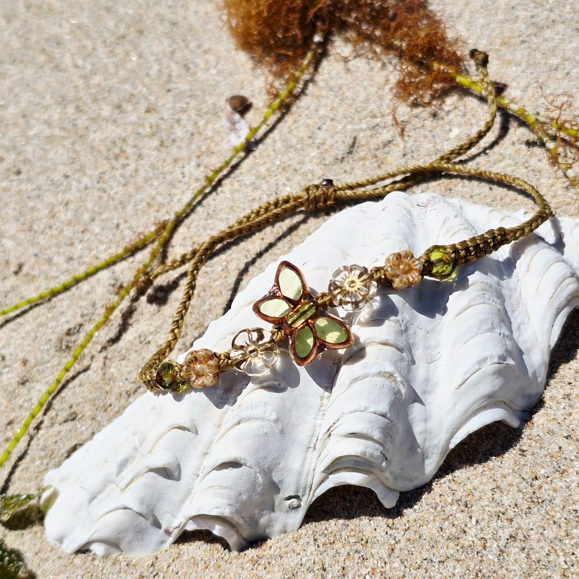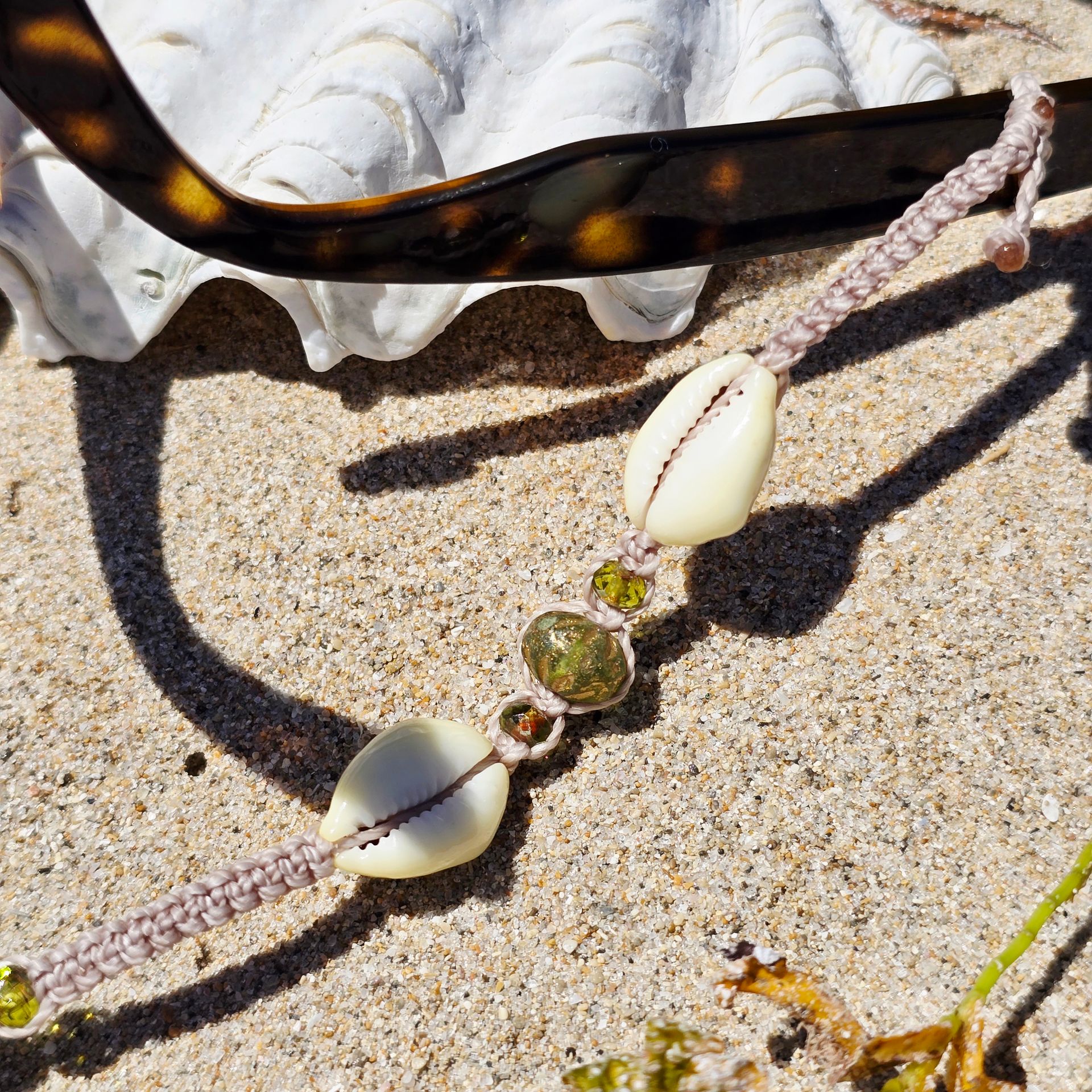 Featuring a variety of designs including adjustable necklaces, bracelets and anklets, and newest in the collection are sunglasses chains, our macramé jewellery collections are crafted using high-quality Linhasita macramé cord and feature Bohemian Glass beads, authentic gemstones and ethically sourced Seashells.